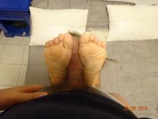 Il suo cazzo è molto più grosso dei miei piedini....io porto il 35. Era arrapato ed aveva un cazzo DURISSIMO tra le piante dei miei piedini morbidi. Gli ho stretto le piante attorno al cazzone.